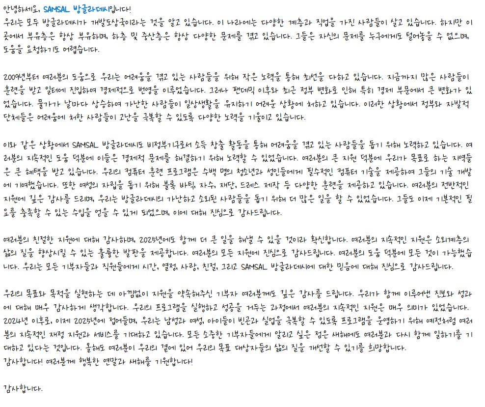 [방글라데시] 삼살 방글라데시의 2024 감사편지